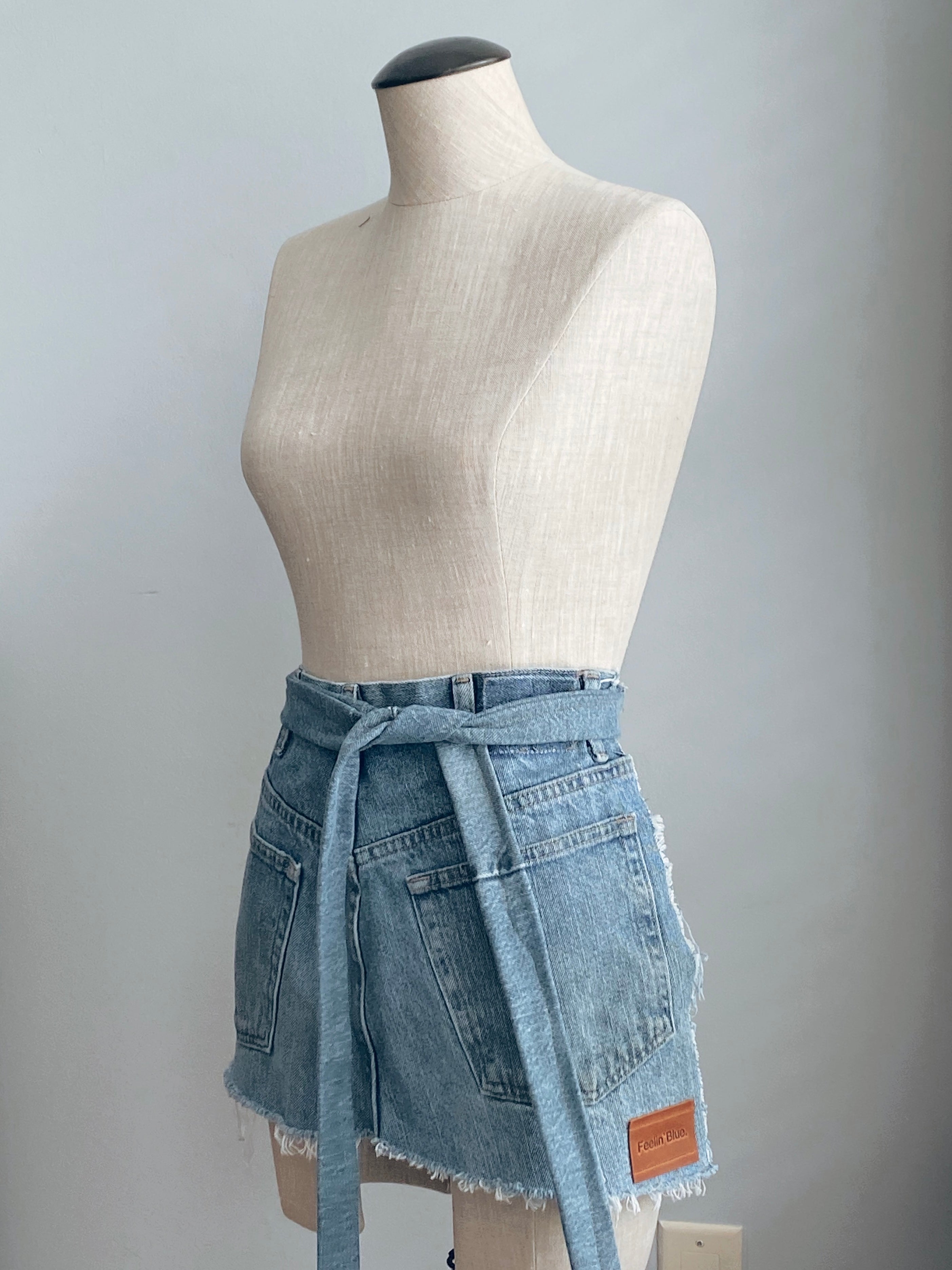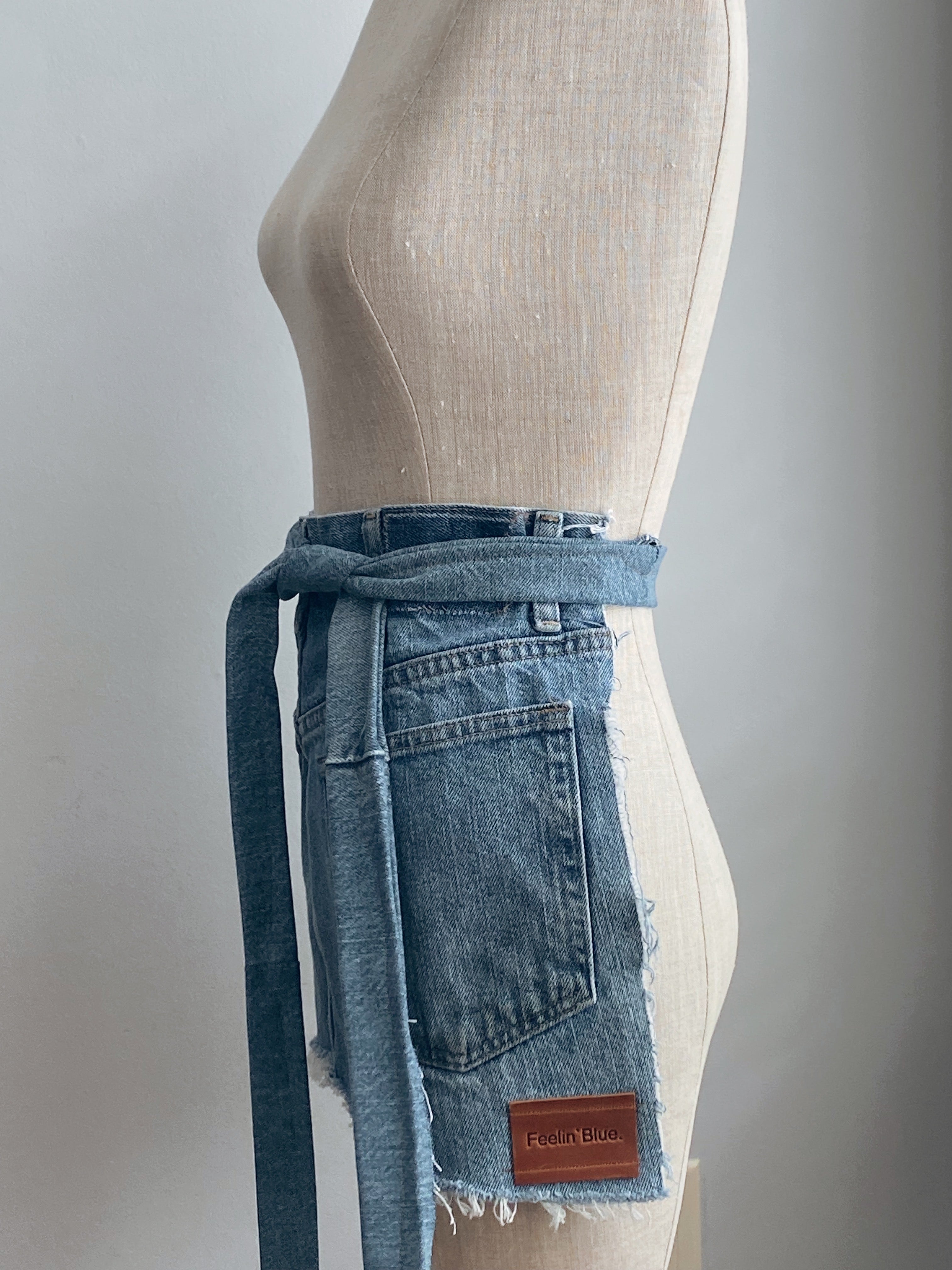 A chic and versatile statement piece, this Denim Half Apron is made from 100% repurposed denim. This sustainable and fashionable half apron is perfect for gifting or purchasing for yourself, showcasing your dedication to environmentally friendly fashion. Pair it with other Feelin' Blue products for a coordinated and sustainable look.
