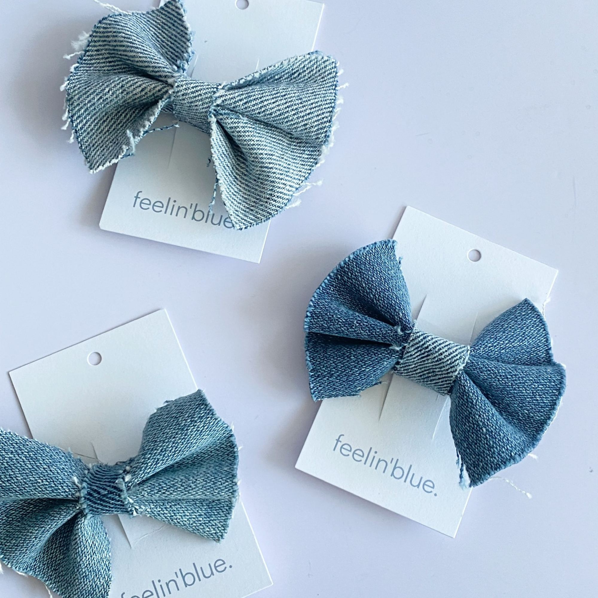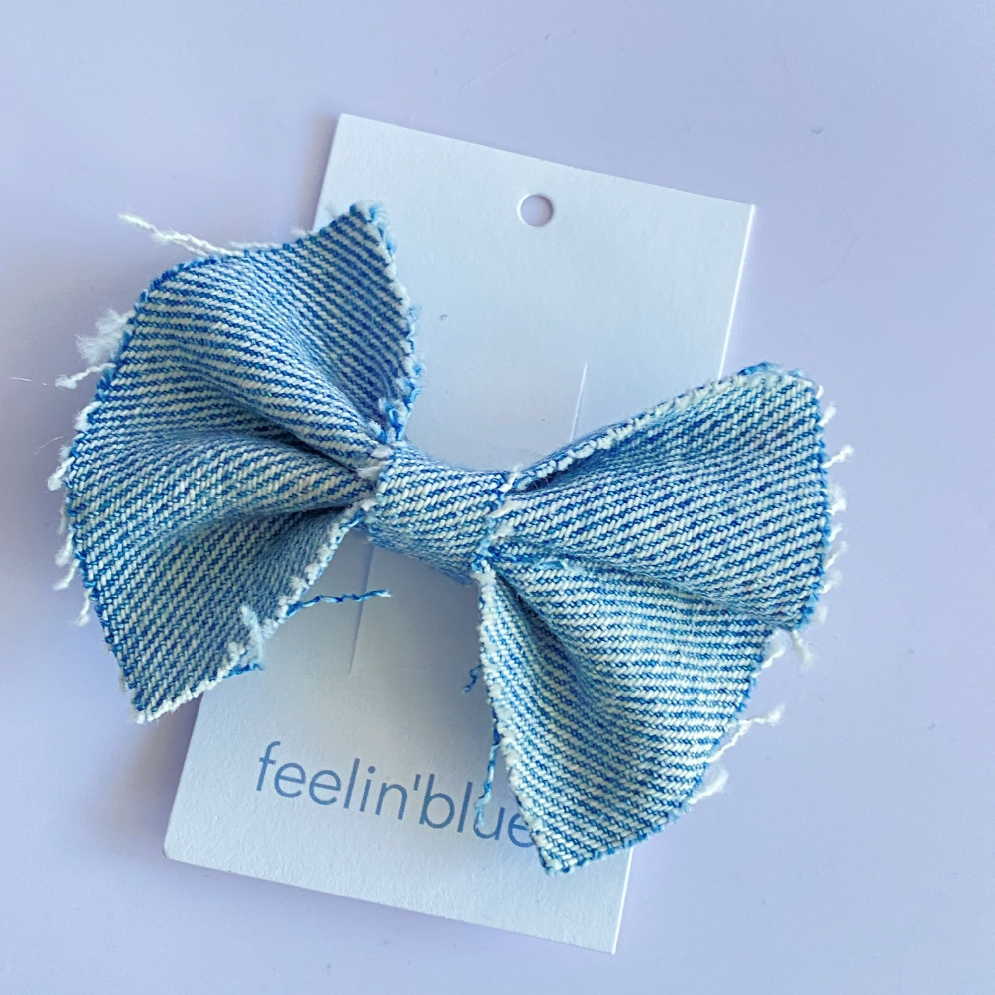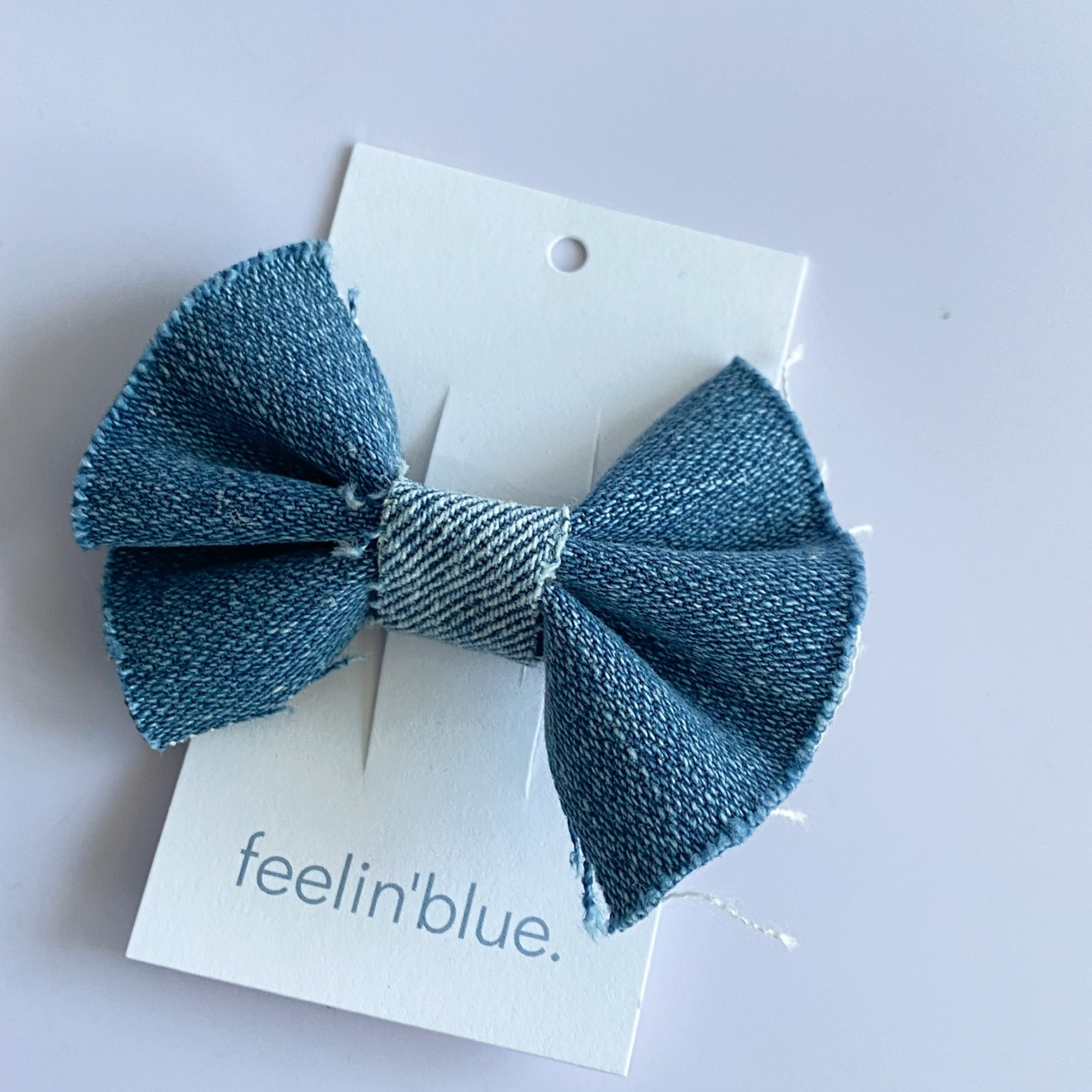 Elevate your hairstyles with these eco-friendly Denim Bow Hair Ties, crafted from 100% repurposed denim. Perfect for adding a touch of sustainable chic to your look, these hair ties are both fashionable and gentle on the environment. Style them with other Feelin' Blue products for a coordinated and eco-conscious ensemble.
