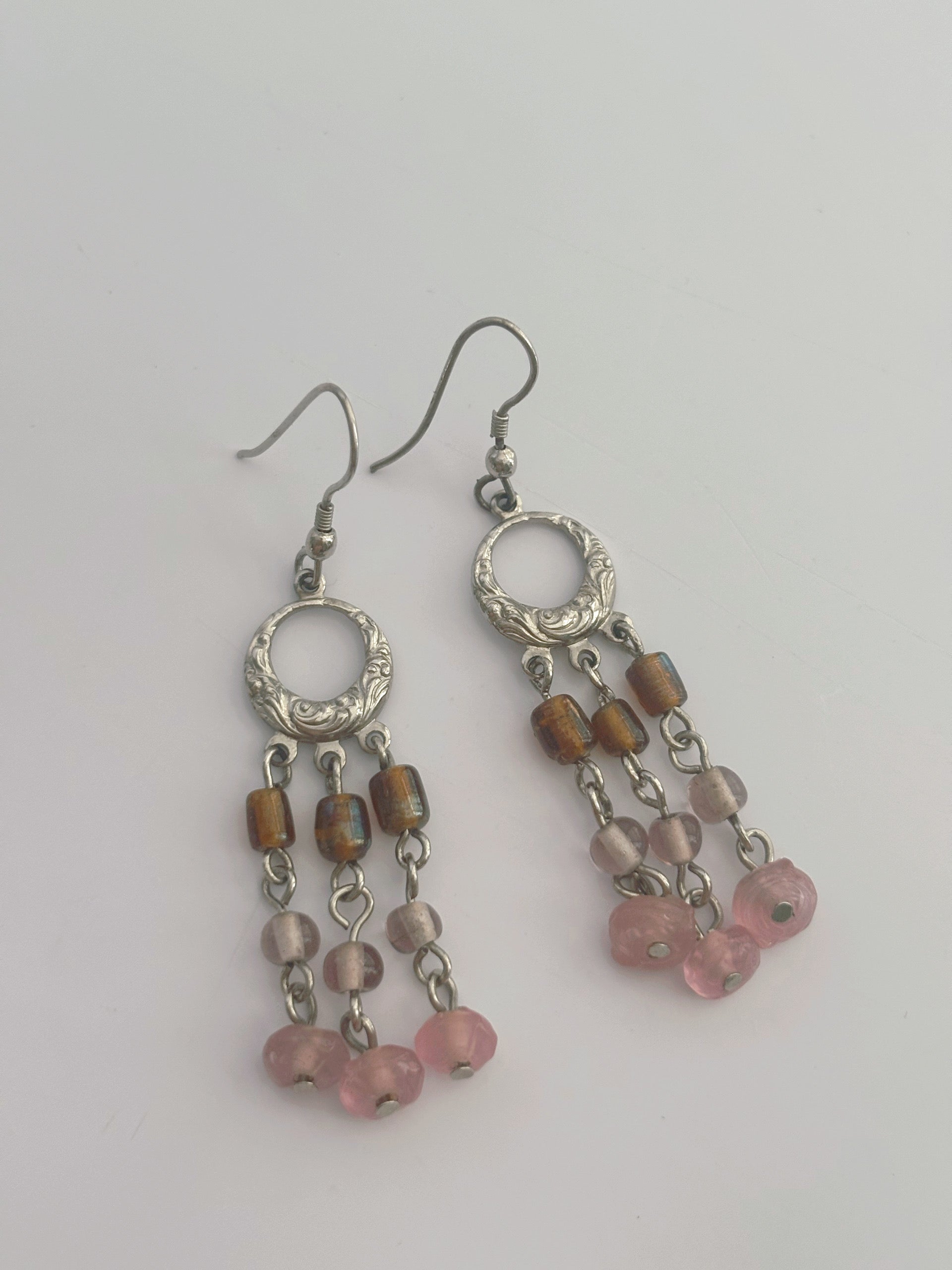 Pink and Brown Beaded Dangling Earrings