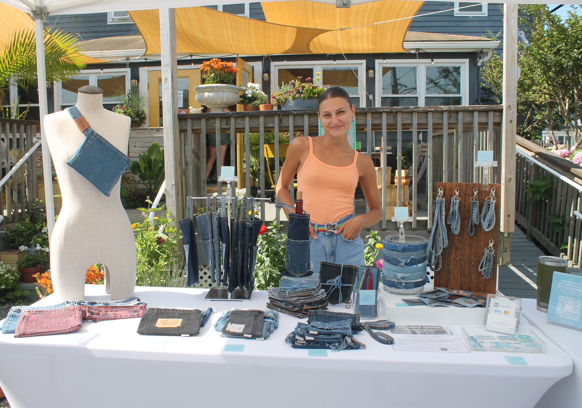 Fueled by this unexpected burst of support, I packed up my denim creations and hosted my very first in-person pop-up shop in July at 506 Boutique in Surf City. My handmade shorts were priced at $10, and I sold quirky little clutches crafted from the cuffs of jean legs for just $5.