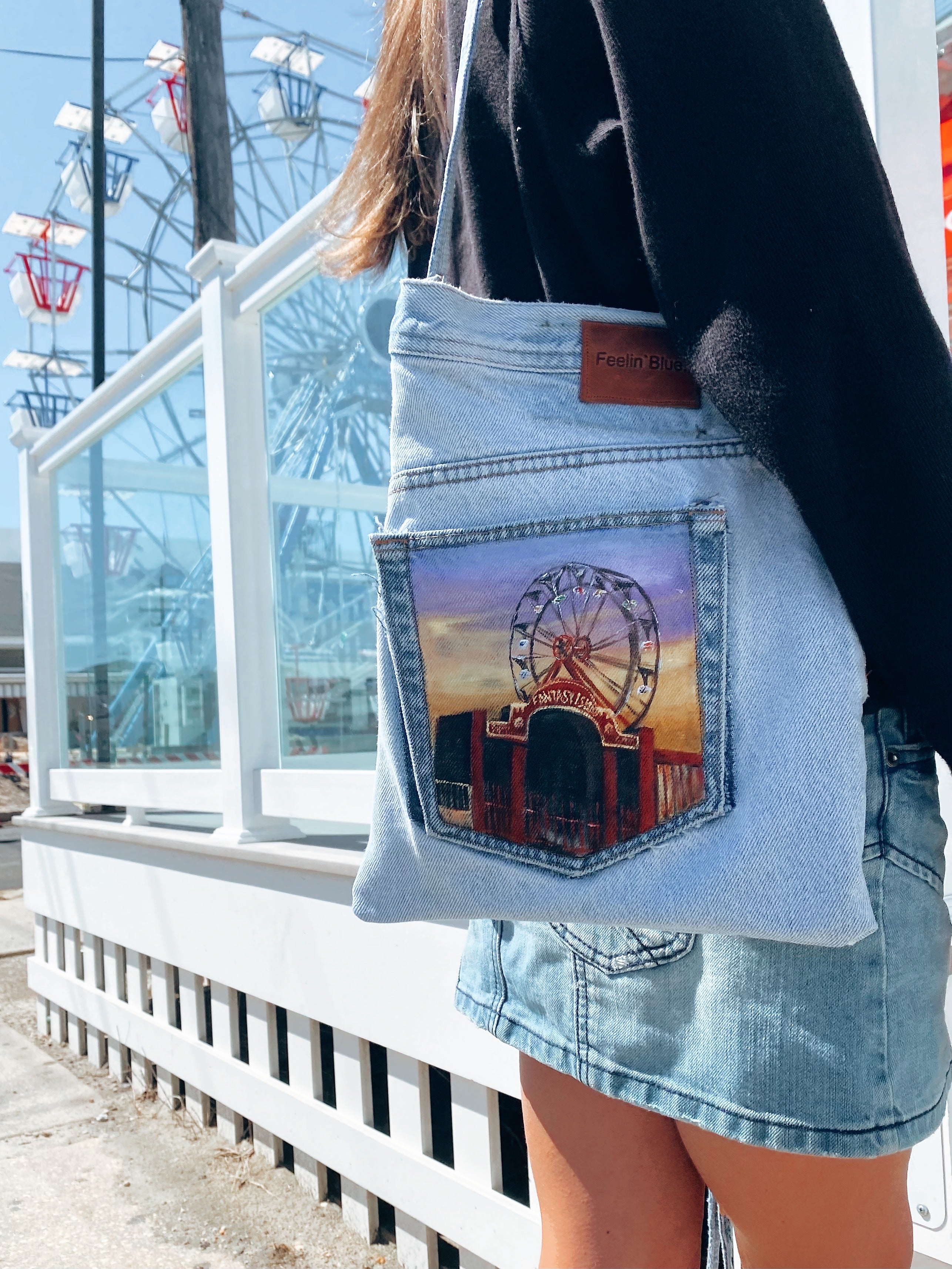 All of our denim pieces are sourced with intention and care. We collect donated jeans and other denim items from local community members, thrift stores, estate sales, and vintage suppliers—many of them right here in New Jersey. From there, it’s cleaned, deconstructed, and transformed into one-of-a-kind Feelin’ Blue pieces.