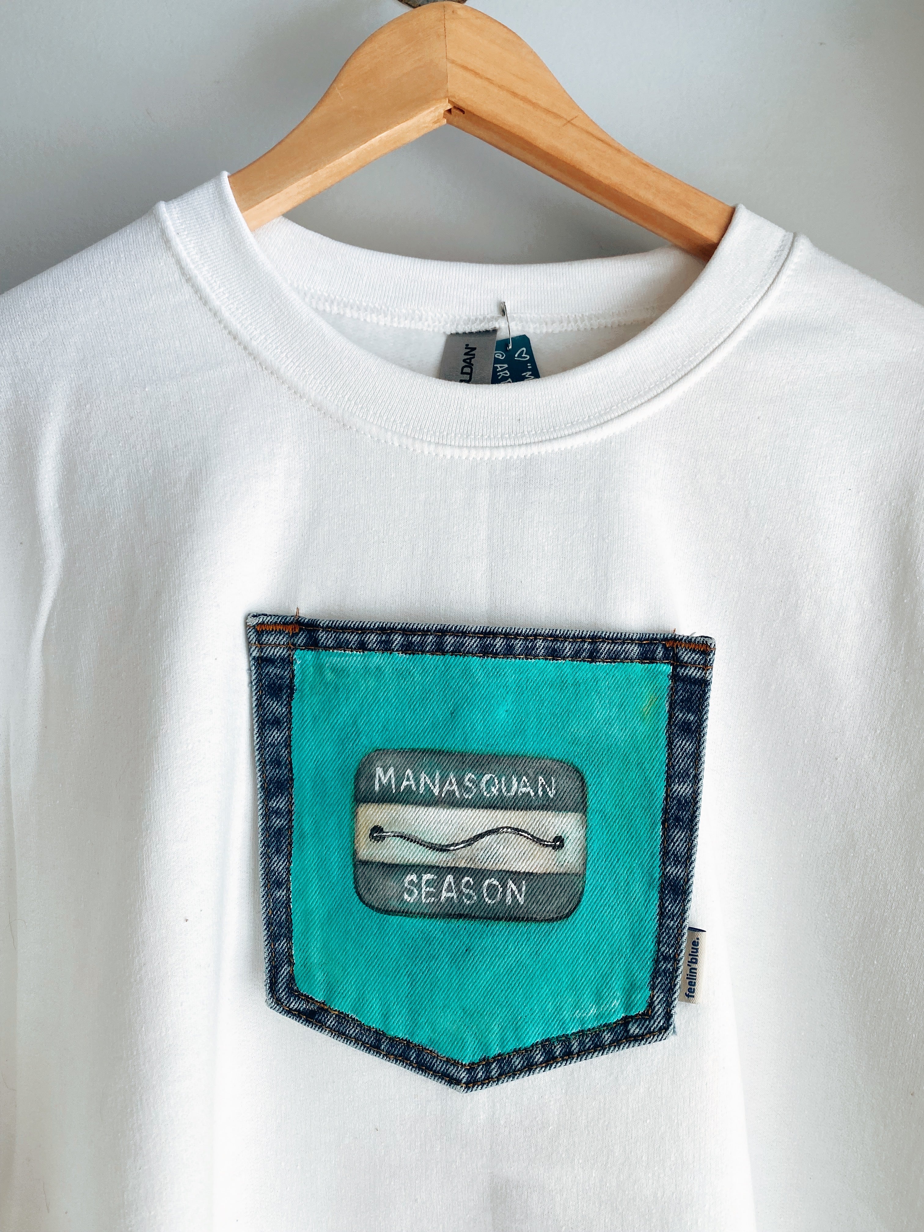 All of our denim pieces are sourced with intention and care. We collect donated jeans and other denim items from local community members, thrift stores, estate sales, and vintage suppliers—many of them right here in New Jersey. From there, it’s cleaned, deconstructed, and transformed into one-of-a-kind Feelin’ Blue pieces.
